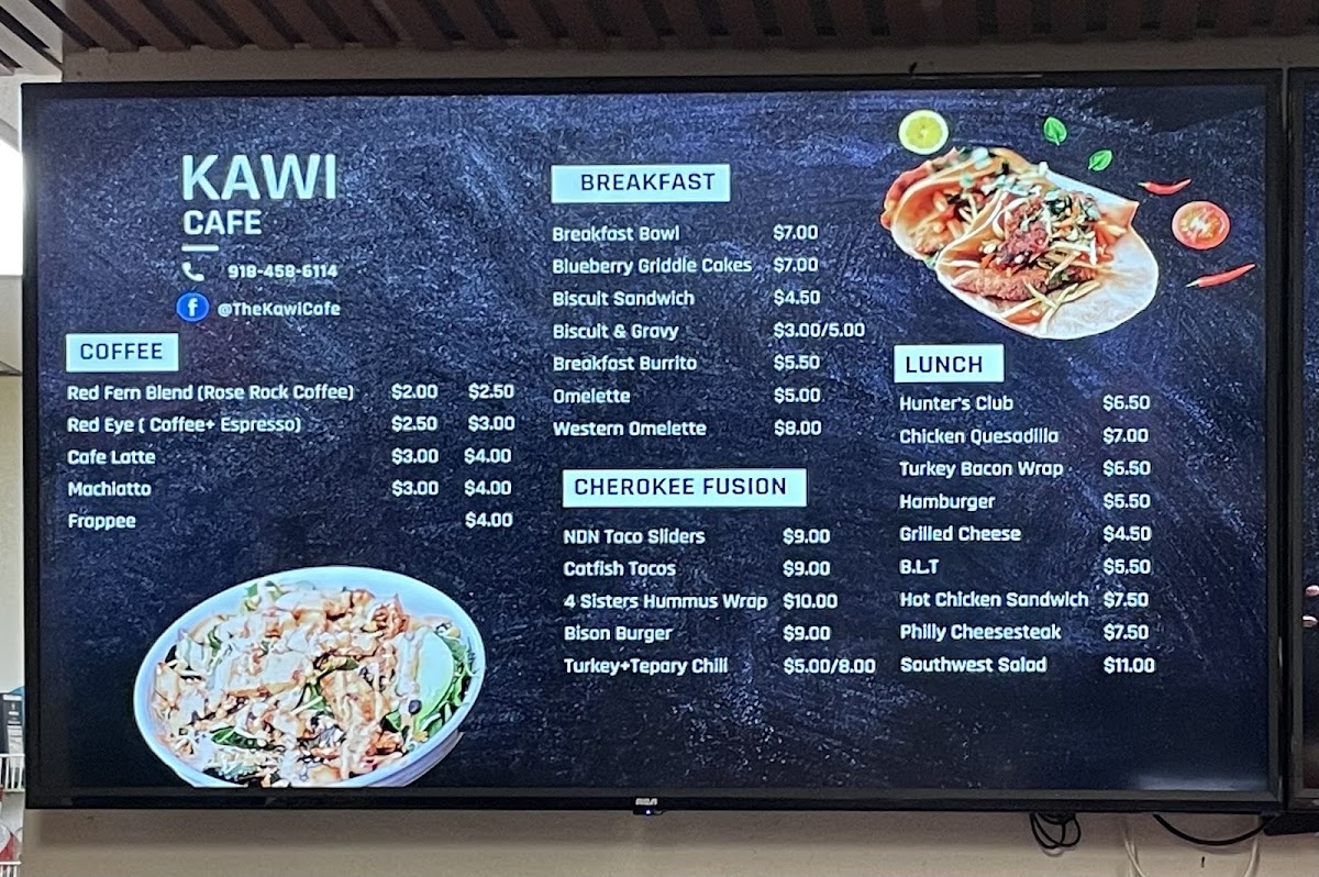 Looking for a cozy spot to enjoy delicious food in Tahlequah? Look no further than Kawi Cafe Menu. Nestled at 215 Muskogee Ave, this charming cafe offers a variety of dishes that are sure to satisfy any craving. Whether you're in the mood for a fresh salad, a hearty sandwich, or something sweet to finish off your meal, there's something for everyone. The cafe prides itself on using fresh ingredients to create flavorful meals, making every bite worth savoring. With a relaxed, welcoming atmosphere, it’s the perfect place to grab a quick bite or settle in for a leisurely meal with friends and family. Don't forget to try one of their signature drinks, perfect for pairing with your meal.
